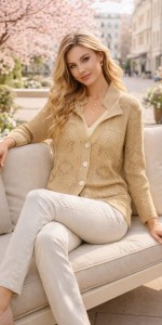 47 Elegancki ażurowy kardigan damski Jelonek – beżowy sweter premium, lekki i stylowy (UNI)