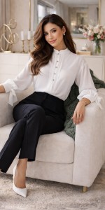✔ stylizacji biurowych i wizytowychTa bluzka to synonim subtelnej elegancji i kobiecego wdzięku — idealna baza do stylizacji w duchu nowoczesnej klasyki
