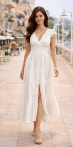 Zachwycająca, kobieca i niezwykle stylowa – ta biała sukienka maxi marki Jasmin to idealna propozycja na lato, wakacje i wyjątkowe okazje. Wykonana w 100% z naturalnej bawełny, zapewnia lekkość, przewiewność i maksymalny komfort noszenia nawet w ciepłe dni. Delikatny haft dodaje jej romantycznego charakteru, a subtelne rozcięcie z przodu podkreśla nogi i nadaje całości zmysłowego wyrazu.