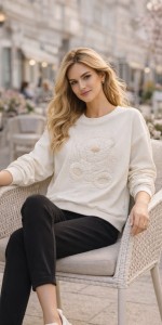 Stylowa i niezwykle wygodna bluza marki ZAPS to idealna propozycja na wiosenne i letnie dni. Model zachwyca subtelnym, kobiecym wyglądem oraz uroczą aplikacją misia w odcieniach kremu i beżu, która nadaje całości lekko zabawnego, modnego charakteru. Delikatna kolorystyka sprawia, że bluza doskonale wpisuje się w casualowe stylizacje – świetnie wygląda zarówno z jeansami, jak i eleganckimi spodniami czy legginsami.