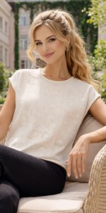 ZAPS Ażurowa Bluzka Dzianinowa Oversize – Lekki Sweterek bez Rękawów | Ecru z Geometrycznym Wzorem