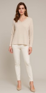 Neutralny odcień ułatwia łączenie z innymi elementami garderoby – świetnie komponuje się zarówno ze spodniami, jak i spódnicami.