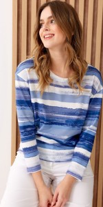 26 Bluzka damska w niebieskie pasy akwarelowe, długi rękaw