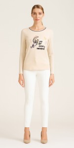 26 Bluzka damska z nadrukiem i długim rękawem – beżowa