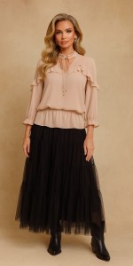 80 Delikatna pudrowa bluzka z falbankami wiskoza 100%
