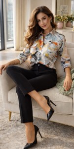 27 Elegancko-romantyczna bluzka VERA MONI – artystyczny print, lekka i stylowa | AliasOutlet