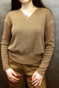 26 Bluzka damska z dzianiny wiskozowej kolor brązowy model FO052-5-21