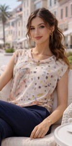 26 Bluzka damska SUNWEAR G10-2-23 beżowa we wzór z topem/ NR 07270