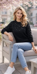 Elegancki sweter Jelonek z subtelnym połyskiem – czarny z delikatnymi zdobieniami | UNI