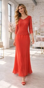 112 Elegancka sukienka maxi z koronkową górą – intensywna czerwień | Inter Irex | Plus Size