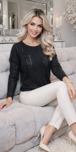 26 SUNWEAR SM014-5-02 | Elegancka dzianinowa bluzka-sweterek GLAMOUR w kolorze czarnym