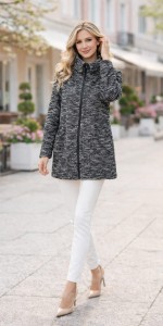 Płaszcz damski TERESA KOPIAS elegancki czarno-srebrny płaszcz zapinany na zamek/Nr03444
