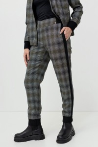 Spodnie posiadają elastyczny pas z gumką, który doskonale dopasowuje się do sylwetki, zapewniając swobodę ruchów przez cały dzień. Boczne kieszenie wszyte w szwy dodają praktyczności, a ściągacze na dole nogawek oraz efektowny czarny lampas optycznie wysmuklają nogi i nadają im modny, lekko sportowy charakter.