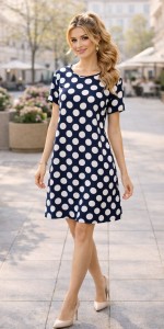 To model stworzony dla kobiet, które lubią wyglądać stylowo bez rezygnacji z wygody. Klasyczne połączenie granatu i bieli sprawia, że sukienka jest łatwa do zestawienia z dodatkami – pasuje zarówno do eleganckich szpilek, jak i lekkich butów na co dzień.Dostępna w sklepie internetowym AliasOutlet.com – postaw na ponadczasowy wzór, który nigdy nie wychodzi z mody.