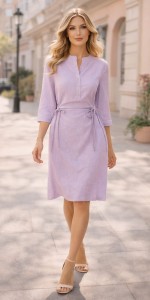 Lniana sukienka FERIA pastelowy liliowy róż – len i bawełna