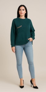 95 Sweter damski w kolorze zielonym z ozdobną kieszonką