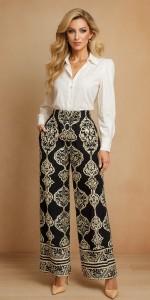 Spodnie letnie damskie z wiskozy – wzór orientalny