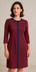 Sukienka damska marki Click – bordowa z granatową lamówką