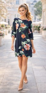 To sukienka, która łączy wygodę z elegancją — lekka, kobieca i uniwersalna. Świetnie sprawdzi się jako baza wielu stylizacji: od miejskich po bardziej eleganckie, dzięki efektownemu kwiatowemu printowi i przyjemnemu w dotyku materiałowi.