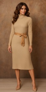 26 Sukienka dzianinowa z paskiem model HS204-5-01 kolor beżowy