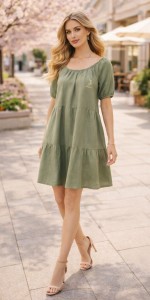 Sukienka Jelonek – naturalna elegancja w kolorze oliwkowym