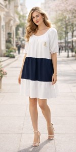 Sukienka marki Jelonek to połączenie swobodnej wygody z kobiecą, codzienną elegancją. Model stworzony z myślą o kobietach, które cenią naturalne tkaniny, lekkość oraz ponadczasowy styl. Dzięki klasycznemu fasonowi i harmonijnemu zestawieniu kolorów sprawdzi się zarówno na spacer, spotkanie w mieście, jak i wiosenno-letnie wyjścia.
