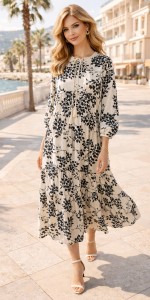 Sukienka Maxi Boho Jasmin „Monochrome Bloom” – lekka, kobieca elegancja