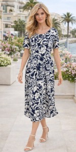 Sukienka oversize Jasmin granatowo-kremowa w elegancki wzór – lekka i kobieca
