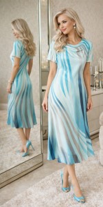 Wielobarwny, harmonijny wzór w odcieniach jasnego turkusu, mięty, błękitu, bieli oraz chłodnej szarości, ułożony w płynne, dynamiczne pasy. Kolory są świeże, eleganckie i bardzo kobiece – idealne na sezon wiosenno-letni, ale sprawdzą się również w stylizacjach całorocznych.