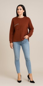 95 Sweter damski w kolorze ceglanym z ozdobną kieszonką
