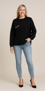 95 Sweter damski w kolorze czarnym z ozdobną kieszonką