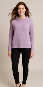 Stylowa i wygodna bluzka damska z miękkiej dzianiny w modnym odcieniu liliowym.